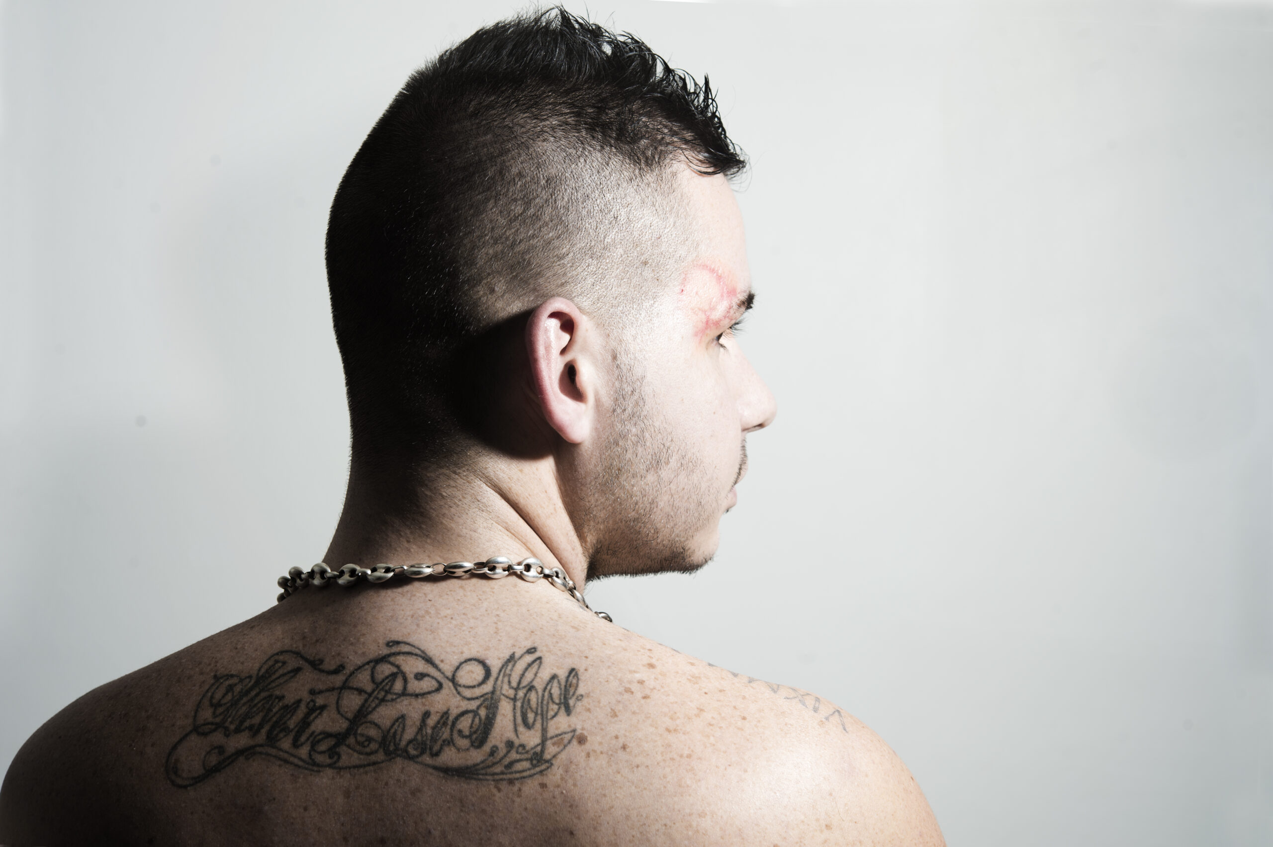 Lex : Non, pas trop. Même si aujourd’hui, j’ai encore des difficultés à voir. Par exemple, je ne distingue pas les panneaux sur l’autoroute. Ou bien quand mon fils me montre une photo sur le téléphone, si je vous fais ça (il tend son téléphone), vous allez voir l’image, alors que moi, je suis obligé de me poser, d’attendre et de me concentrer trois secondes pour bien la regarder. Mais en tout cas, j’ai beaucoup moins de séquelles que la première fois où on s’était rencontrés à l’automne 2014, quelques semaines après ce tir de Flash-Ball. A l’époque, je n’avais plus que trois dixièmes de vision à l’œil droit. J’avais aussi eu la mâchoire bien touchée, donc je ne pouvais pas trop parler ou manger pendant plusieurs mois. Avec des conséquences terribles : comme j’avais déjà seulement un dixième à l’œil gauche de manière définitive à cause d’une toxoplasmose contractée vers l’âge de 20 ans, j’étais vraiment devenu malvoyant. J’avais alors dû arrêter mon métier de carreleur et on m’avait retiré le permis de conduire. Reconnu travailleur handicapé, j’avais donc commencé à tenter une reconversion professionnelle. Tout en jonglant avec les rendez-vous médicaux : ophtalmologiste, psychologue…
